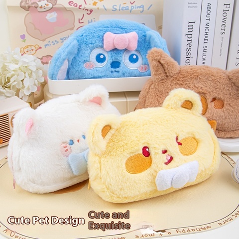 Estuche de lápices de tela de felpa de gran capacidad único de alto valor, caja de papelería, bonito estuche de lápices con cierre de cremallera peculiar para niñas